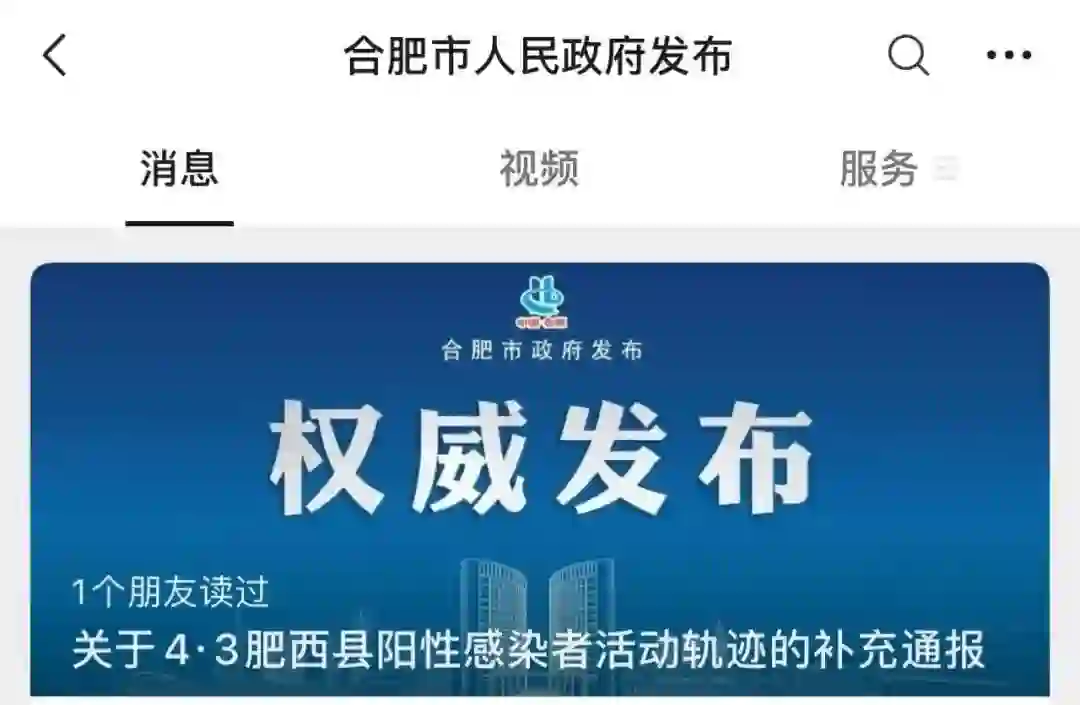 据微信公号“合肥市人民政府发布”消息,4月6日深夜,安徽肥西县新冠肺炎疫情防控指挥部发布《关于4·3肥西县阳性感染者活动轨迹的补充通报》。
