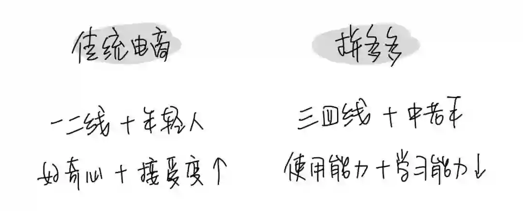 对于拼多多而言,完全可以基于这类用户的购买特征“设计一套符合他们习惯的线上购买流程”,而不是直接照搬原来的电商购物流程。