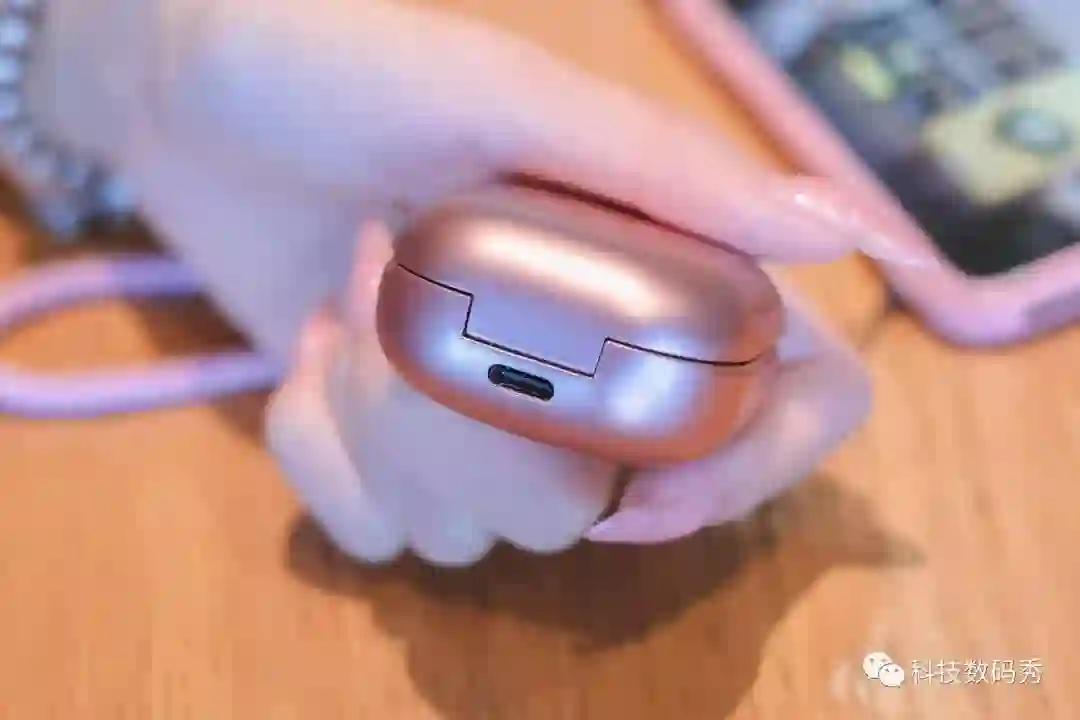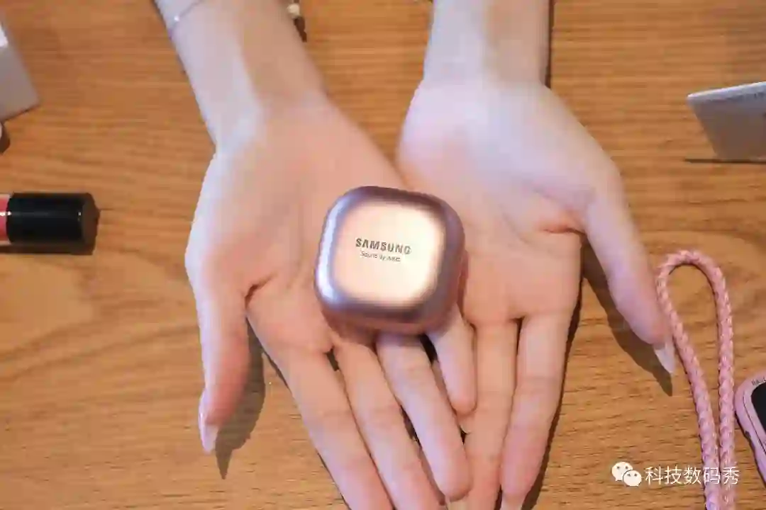 迫不及待的打开盒子,先拿出了耳机盒主体,相比国内某些厂家做成椭圆形、长方形等等的设计,三星这种像极了小的首饰盒的设计体积更小,握在小女生的手里都很便携,单手握持不用考虑会有任何问题。