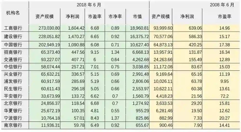 10年前,银行股是广大投资者青睐的对象,10年后,银行股的身价几乎是原地踏步。笔者整理了10年来 A 股上市银行(不含10内 IPO 的银行)的相关指标,从中可以看出什么呢:
