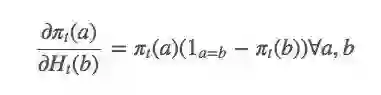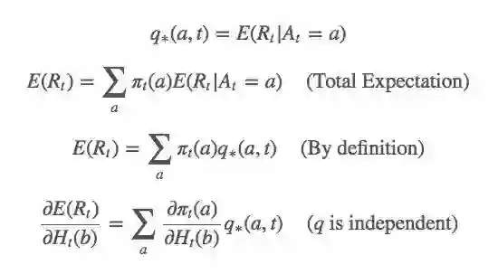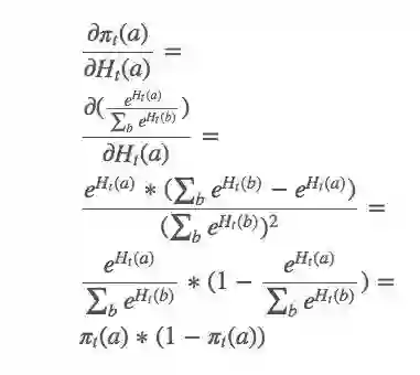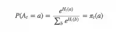 设动作偏好为Ht(a),它和回报无关,只是一个动作相对于另一个动作的重要性。那么At应该符合gibbs分布(也就是机器学习的softmax分布):