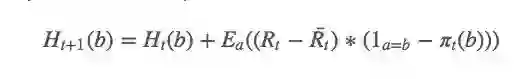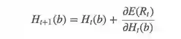 对于这个式子,我们该怎么基于梯度计算最大似然估计?首先,我们对Ht(a)做梯度上升,因为它是我们的变量。我们想最大化E(Rt):