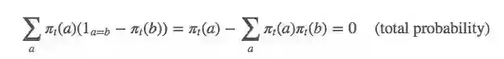 这只是整个梯度的一个偏导数。那么b≠a的动作呢?下面是省略计算过程的结果: