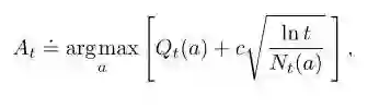 每选一次a,不确定项就会减少,分母Nt(a)增加;另一方面,每一次选择了a以外的行为,t会增加但Nt(a)不会改变,不确定评估值会增加。