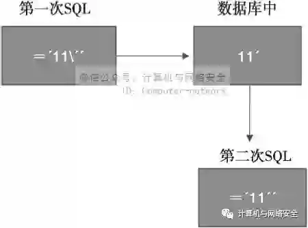 需要先构造好利用代码写入网站保存,在第二次或多次请求后调用攻击代码触发或者修改配置触发的漏洞叫做二次漏洞,举一个简单的SQL注入例子,攻击者A在网站评论的地方发表了带有注入语句的评论,这时候注入语句已经被完整地保存到数据库中,但是评论引用功能存在一个SQL注入漏洞,于是攻击者在评论处引用刚提交的带有注入语句的评论,提交后server端从数据库中取出第一次的评论,由于第一次评论中带有单引号可闭合第二次的语句,从而触发了注入漏洞。