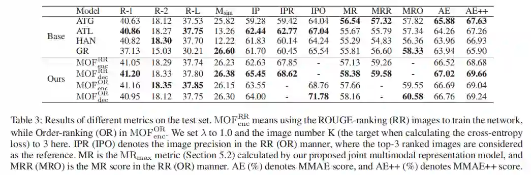 在本文中,论文着重于通过提出一种多模式目标函数来改进多模式摘要,该目标函数同时考虑了文本摘要生成的负对数似然损失和图像选择的交叉熵损失。实验表明,该模型可以在真实的人工标记测试集和自动构建的测试集上提高多模式输出的质量。