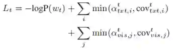 其中PA(img)表示图像的实际概率分布(如果选择排名前k位的图像作为目标,则图像的概率为1 / k。)。最后,将交叉熵损失(由超参数λ加权)添加到摘要生成的损失函数中,以产生一个同时考虑了文本参考和图像参考的新损失函数: