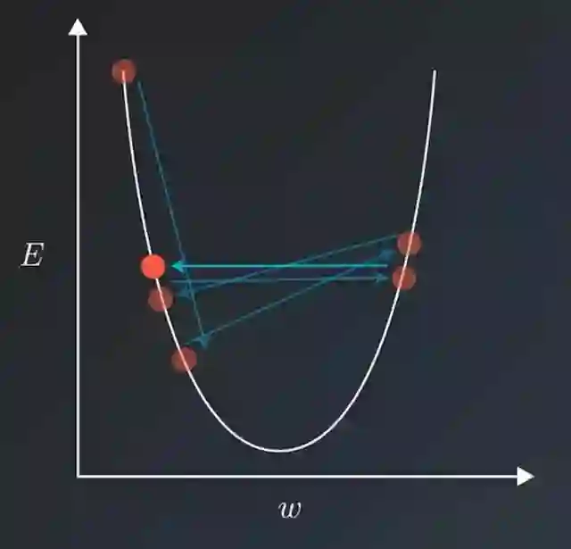 如果让人来走,可能就不一样了,你可能会先随便选一个方向,然后沿着这个方向的梯度向下走;过一会儿再随机换一个方向向下走;最后你发现自己差不多也到了谷底了。