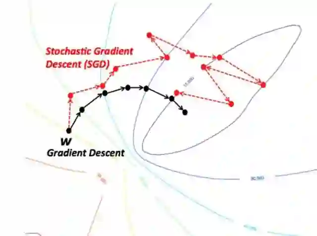 随机梯度下降的想法就是每次在Delta f_i 中随机选取一个计算代替上面的Delta f_i,以这个随机选取的方向作为下降的方向。这样的方法反而比梯度下降能够更快地到达(局部)最优解。