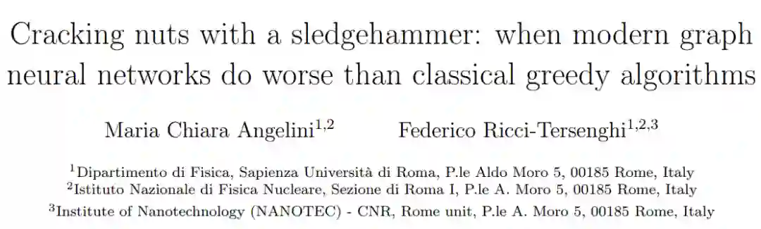 不过,最近一篇新论文《Cracking nuts with a sledgehammer: when modern graph neural networks do worse than classical greedy algorithms》对 Martin JA Schuetz 等人的研究提出了质疑,认为 Martin JA Schuetz 等人提出的 GNN 优化器是「用大锤敲坚果( Cracking nuts with a sledgehammer ),类似于迫击炮打蚊子」,既浪费资源,效果也不好。