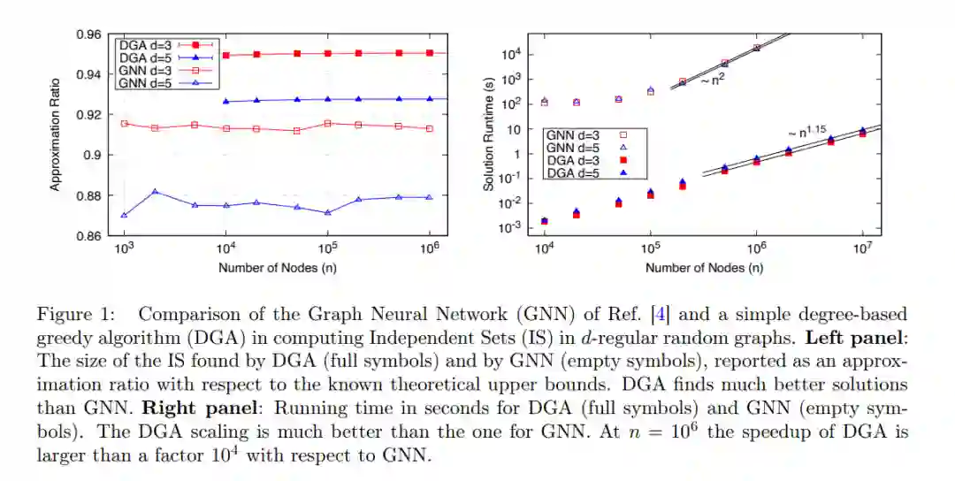 GNN 是近年来非常火的一个领域。最近,一篇 Nature 子刊论文提出了一种用 GNN 解决组合优化问题的方法,并声称该 GNN 优化器的性能与现有的求解器相当,甚至超过了现有的求解器。不过,这篇论文引来了一些质疑:有人指出,这个 GNN 的性能其实还不如经典的贪心算法,而且速度还比贪心算法慢得多(对于有一百万个变量的问题,贪心算法比 GNN 快 104 倍)。所以质疑者表示,「我们看不出有什么好的理由用这些 GNN 来解决该问题,就像用大锤砸坚果一样。」他们希望这些论文作者能够在宣称方法优越性之前,先和困难问题的基准比较一下。