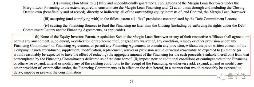 未经本公司事先书面同意,股权投资者、母公司、收购子公司或保证金贷款借款人或其各自的任何关联方均不得同意或允许对任何融资承诺或融资协议下的任何条件、补救措施或其他规定进行任何修正、补充、修改或替换。