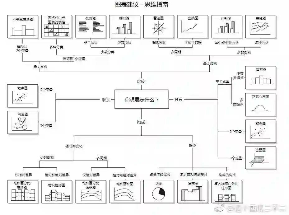 1、Andrew Abela整理的图表类型选择指南图示,将图表展示的关系分为四类 :