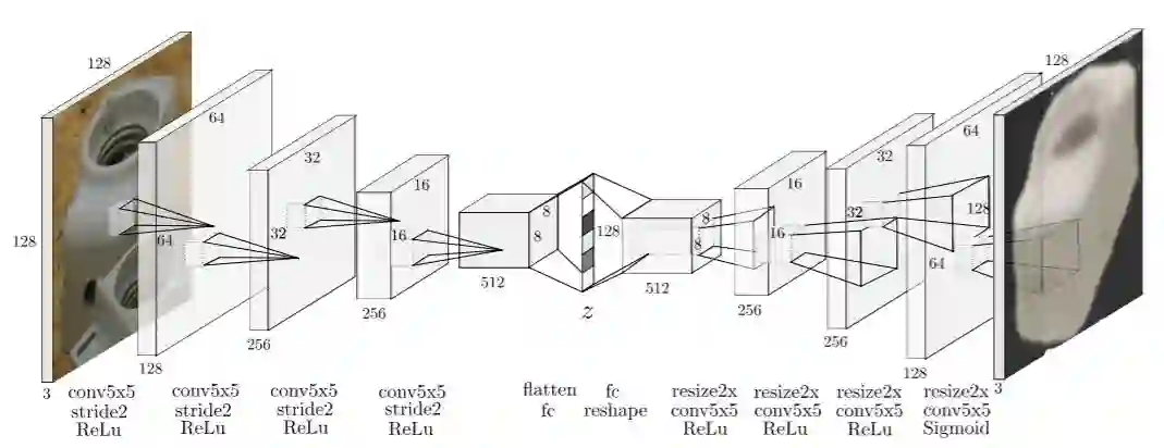 摘要:我们提出了一个基于 RGB 的实时目标检测和 6D 姿势估计流程。我们的新型 3D 目标朝向估计方法基于去噪自编码器(Denoising Autoencoder)的一种变体,其使用域随机化(Domain Randomization)在 3D 模型的模拟视图上进行训练。我们称之为「增强自编码器」(Augmented Autoencoder,AAE),它和现有方法相比具备多项优势:无需真实的姿势标注训练数据,可泛化至多种测试传感器,且内在地能够处理目标和视图对称性。该方法不学习从输入图像到目标姿势的显性映射,而是提供样本在潜在空间中定义的目标朝向隐性表征。在 T-LESS 和 LineMOD 数据集上的实验表明,我们的方法优于基于模型的类似方法,可以媲美需要真实姿态标注图像的当前最优方法。