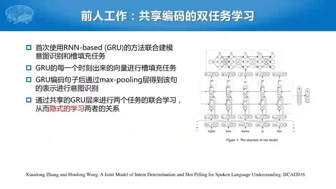 对话系统中自然语言理解这部分包括领域识别、意图识别、语义槽填充的任务,三者不能同时进行学习。