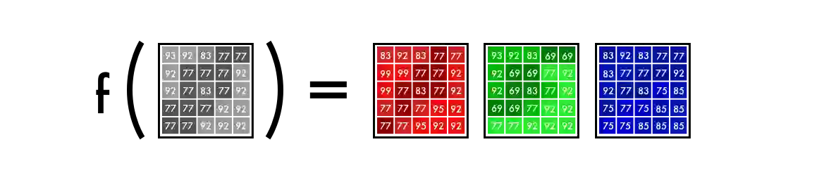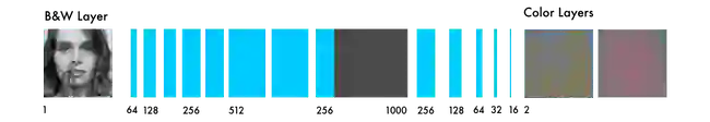 对于黑白图片,每个图层的数值都是 0-255 之间的相同值。如果所有通道数值为 0,则这个像素为黑色。你可能知道神经网络会在输入与输出之间构建联系。将这个思路归纳到我们的着色任务中——神经网络需要找到灰度图像和彩色图像之间的联系。