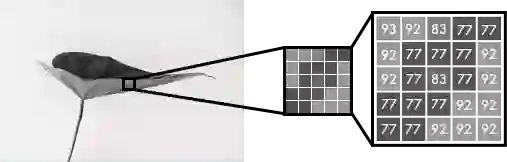 在本节中,我会介绍如何渲染图像,数字色彩的机理以及神经网络的主要逻辑。黑白图片可以在像素网格中表示。每个像素由对应其亮度的数值,范围在 0-255 之间,对应从黑到白。