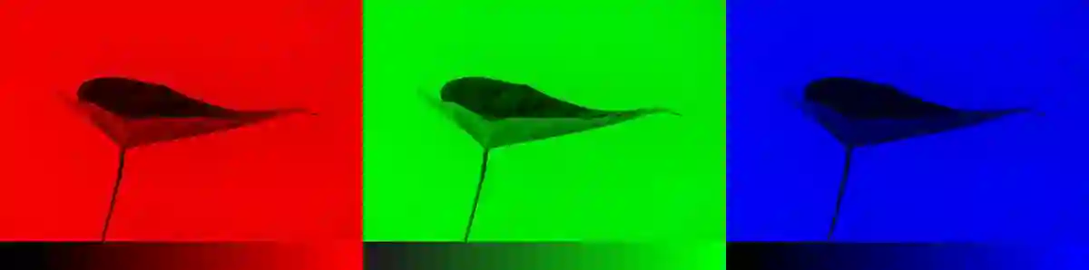 彩色图像(RGB)由三个层组成:红色层、绿色层与蓝色层。若将白色背景上一片绿叶的图片分析为三个通道。直观地,你可能认为树叶只存在于绿色层。但是正如你所见到的,树叶在三个通道中都出现了,这是因为图层不仅决定颜色,还决定亮度。