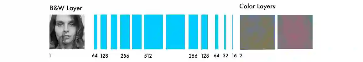 该网络与其他视觉神经网络的主要不同是像素位置的重要性。在上色网络中,图像大小或比例在网络中保持不变。在其他类型的网络中,图像距离最后一层越近就越失真。