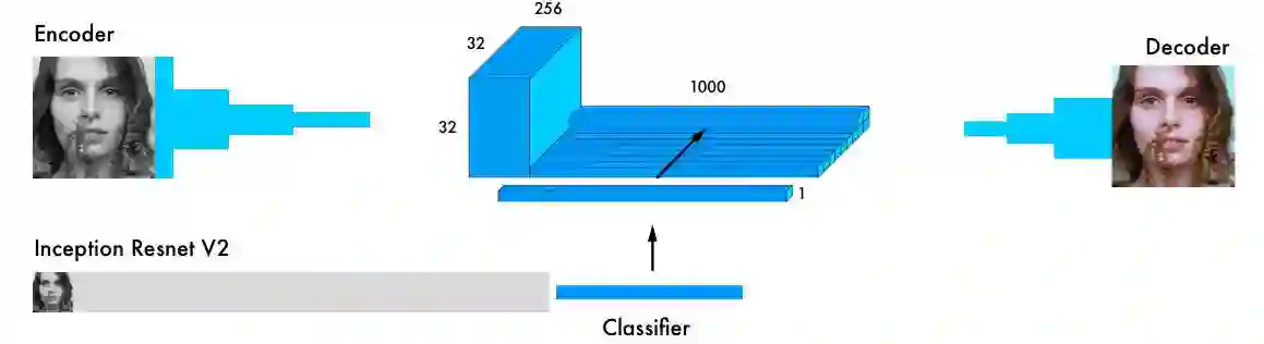与编码器并行,输入图像还在最强大的分类器之一 Inception ResNet v2 中运行。这是一个在 120 万张图像上训练的神经网络。我们提取分类层,然后将它与编码器的输出融合起来。