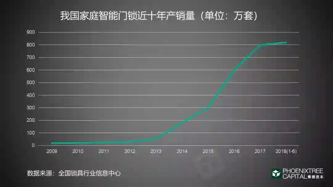 数据显示,家庭智能门锁市场在2017年开始进入快车道,销量达800万套,同比增长1倍以上。2018年更是飞速发展,仅上半年销量就接近830万套,超过2017年全年水平。