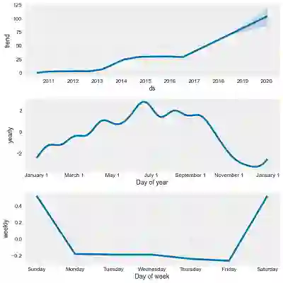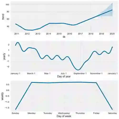 市值分析的最后一步是看整体趋势和模式。prophet 让我们可以很容易地看到整体趋势和不同维度的模式: