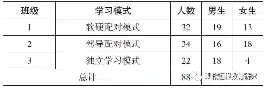 实验过程中,3个班级分别以不同的学习模式进行机器人课程的学习:
