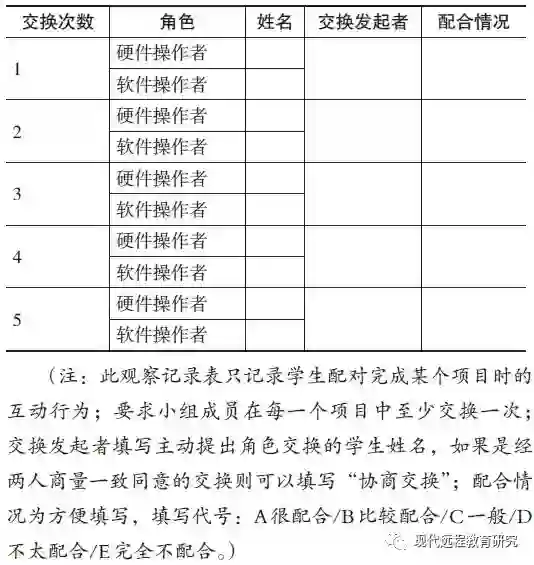 表3 配对学习角色交换记录表(软硬配对模式)