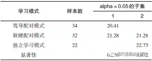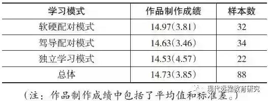 表7 三种学习模式下学生作品制作成绩的平均值