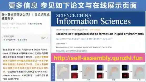 动漫电影《超能陆战队》中设想有一种磁力机器人能够大规模地聚集在一起,组成各种形状。而我们的研究目标是:能否采用“探索-融合-反馈”基本原理实现大规模群体在非中心控制情况下的自我成型。