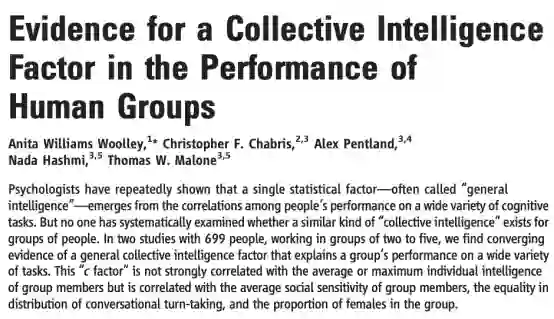 敏感度、个体对话平等度、以及群体中女性比例等三个因素。在一定程度上印证了“三个臭皮匠,顶过一个诸葛亮”。