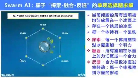 群体智能的构造性模型EIFL,由三个环进行信息激发、融合和反馈。个体探索之后形成片段,融合之后反馈回来,通过多轮迭代形成一个解决方案。