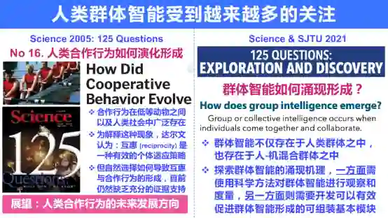 在2021年,Science和上海交通大学合作,再次提出125个问题,其中明确提出了群体智能如何涌现形成?