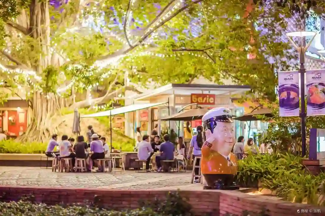 夜市中必吃的小吃有猪脚饭、芒果糯米饭,新鲜水果汁,烧烤大虾等,几十块人民币就可以吃得饱饱了~
