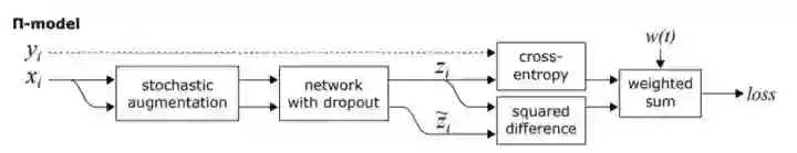 这篇研究工作由 NVIDIA 的研究小组完成,其中包含两个半监督算法框架,分别是 Π Model 和 Temporal ensembling Model,二者都可以认为是 Γ Model 的简化版。剔除了 Γ Model 中各种繁复的设计之后,本论文保留了最核心的思想:利用一致性正则(Consistency Regulation)从无标签的数据中提取有效信号。