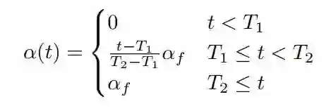 为了平衡有标签数据和无标签数据的信号强度,如上所示,算法在目标函数中引入了时变参数 α(t),其数学形式如下: