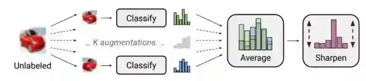 MixMatch 可以认为是近几年半监督学习技术的集大成者,融入了前面提到 Consistency Regulation、伪标签思想、entropy regularization 以及 MixUp 技术,最终实现了显著优于之前半监督学习技术的效果。