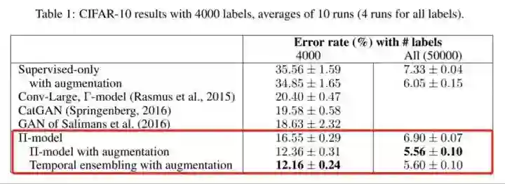 Temporal ensembling Model 这篇论文对这一问题也进行了对比实验:
