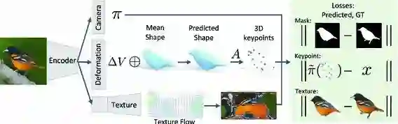 1) 先对单图片中的目标物体进行建模,直接取得其三维形体(template), 之后再使用另一个模型去上色并处理光照。整个流程不是一个端到端的流程(这里并不是说不能做到单模型统一,只是目前没论文这样做),需要分开训练。
