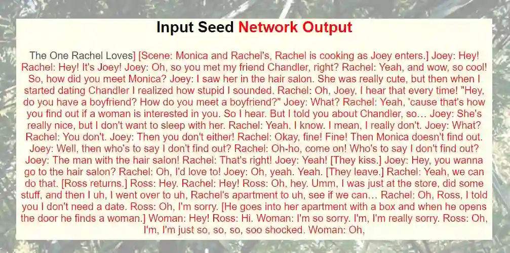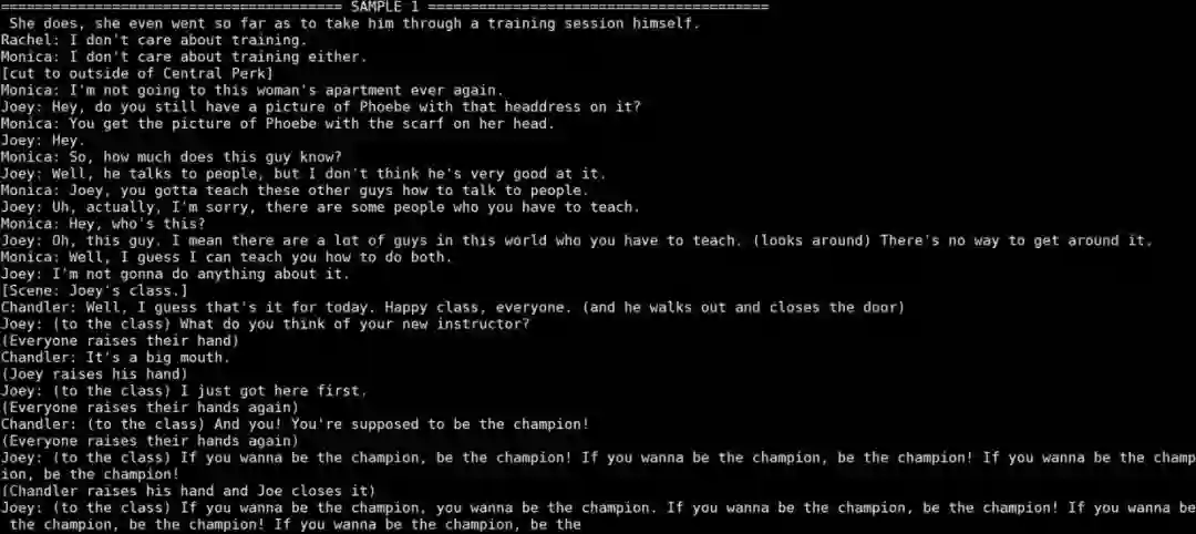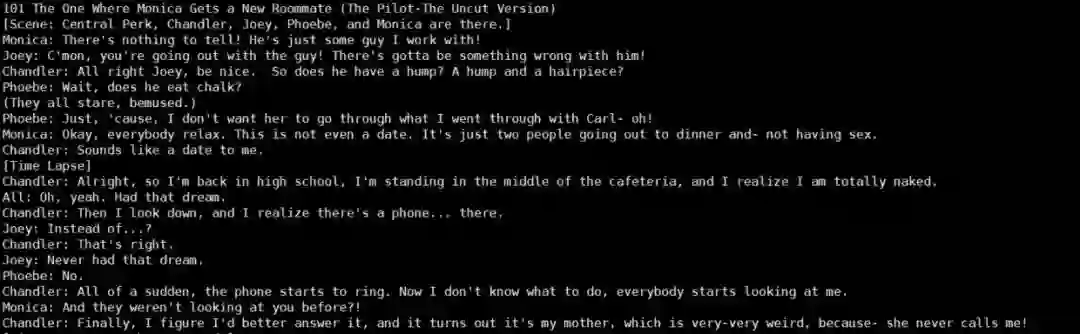 用到的训练数据是我从网上爬下来的老友记十季的剧本: