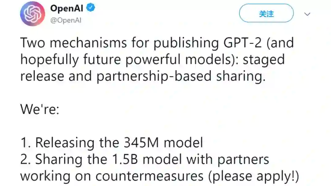 GPT-2 现在如此有名估计也是吸取了前一次教训,直到 BERT 出现大部分人才知道有个 GPT,于是 GPT-1 完美的成了 BERT 的垫脚石。所以待 GPT-2 出场,虽然论文正文短短几页,却是出尽风头,不知其中 OpenAI 公关有出几分力,待人们问开不开源啊,答曰:”Too Dangerous to Release!(就是不给你们用!)“