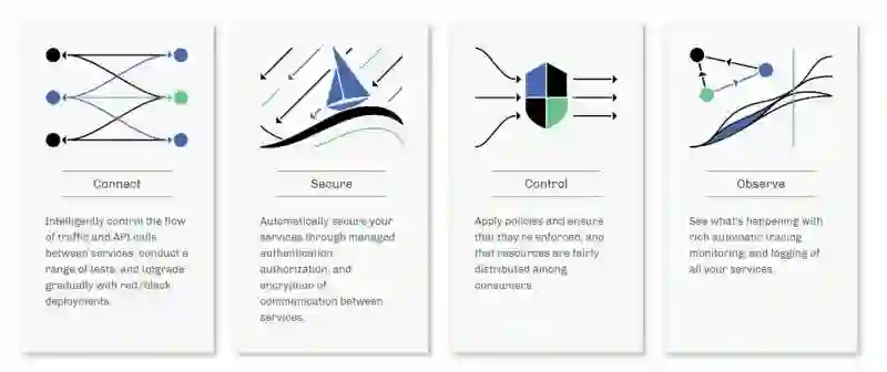 Istio 提供了对整个服务网格的行为洞察和操作控制,提供了完成的解决方案以满足微服务应用程序的各种需求。CoreDNS 是一种快速灵活的工具,可用于发现服务。Envoy和 Linkerd 都支持服务网络体系结构。