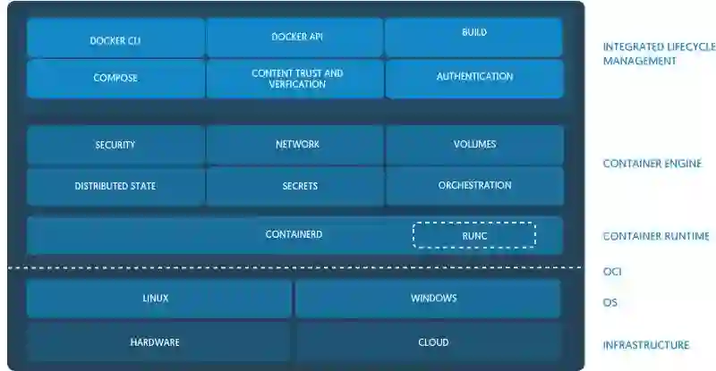 容器运行时 containerd 可用作 Linux 和 Windows 的守护进程。它管理主机系统的完整容器生命周期,从镜像传输和存储到容器执行和监控,再到低级存储、网络附件等等。