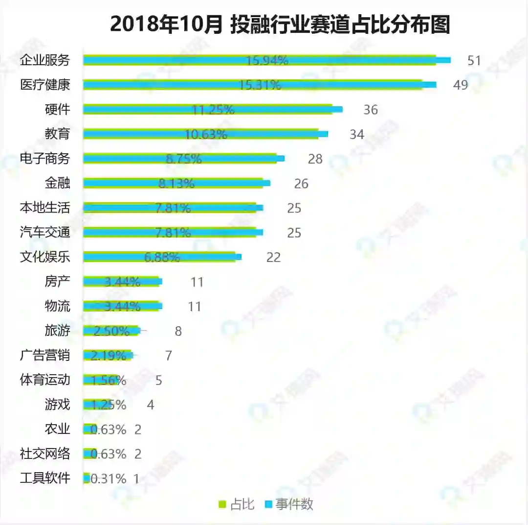 10月投资的明星赛道分别为企业服务、医疗健康与硬件。