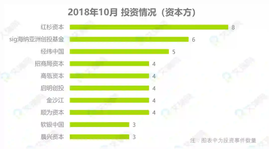 艾瑞网整理2018年10月投资行业事件发现,本月资本方投资行业事件数前三名分别为红杉资本、SIG海纳亚洲基金及经纬中国。三家投资机构更侧重于发展相对较为成熟企业,参加多为A轮-C轮投资。