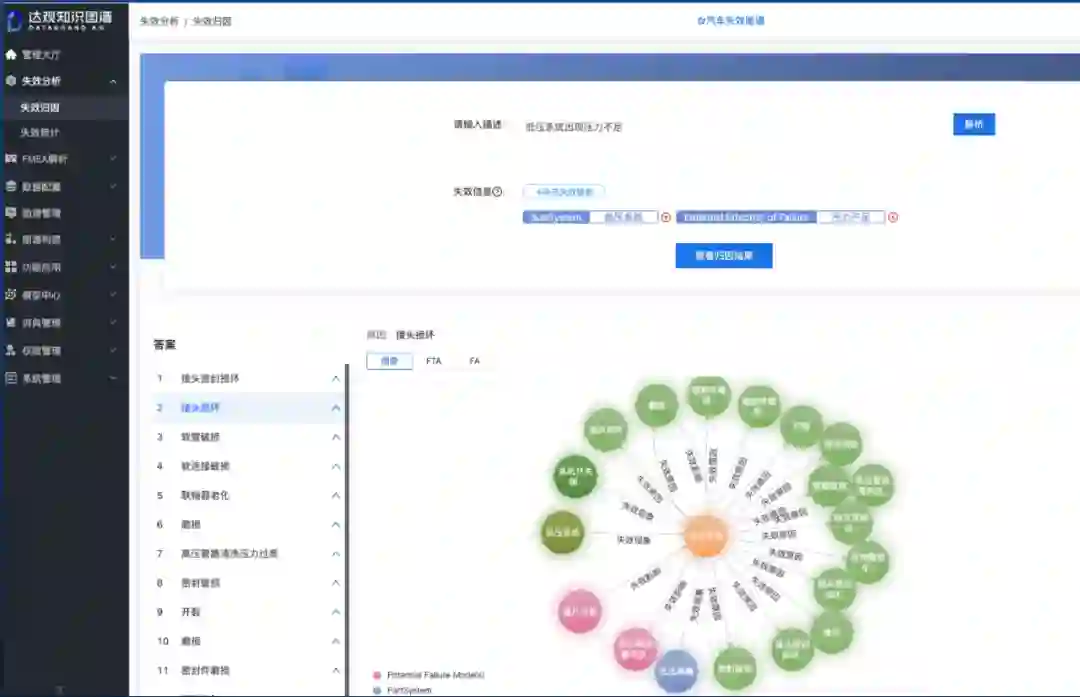 达观数据自主研发的渊海知识图谱平台,已经在金融、地产等行业得到了广泛的应用,可用于舆情分析、军工情报等诸多场景。该平台具备强大的能力赋能各行各业智能化转型,为FMEA知识图谱提供了良好的基础。