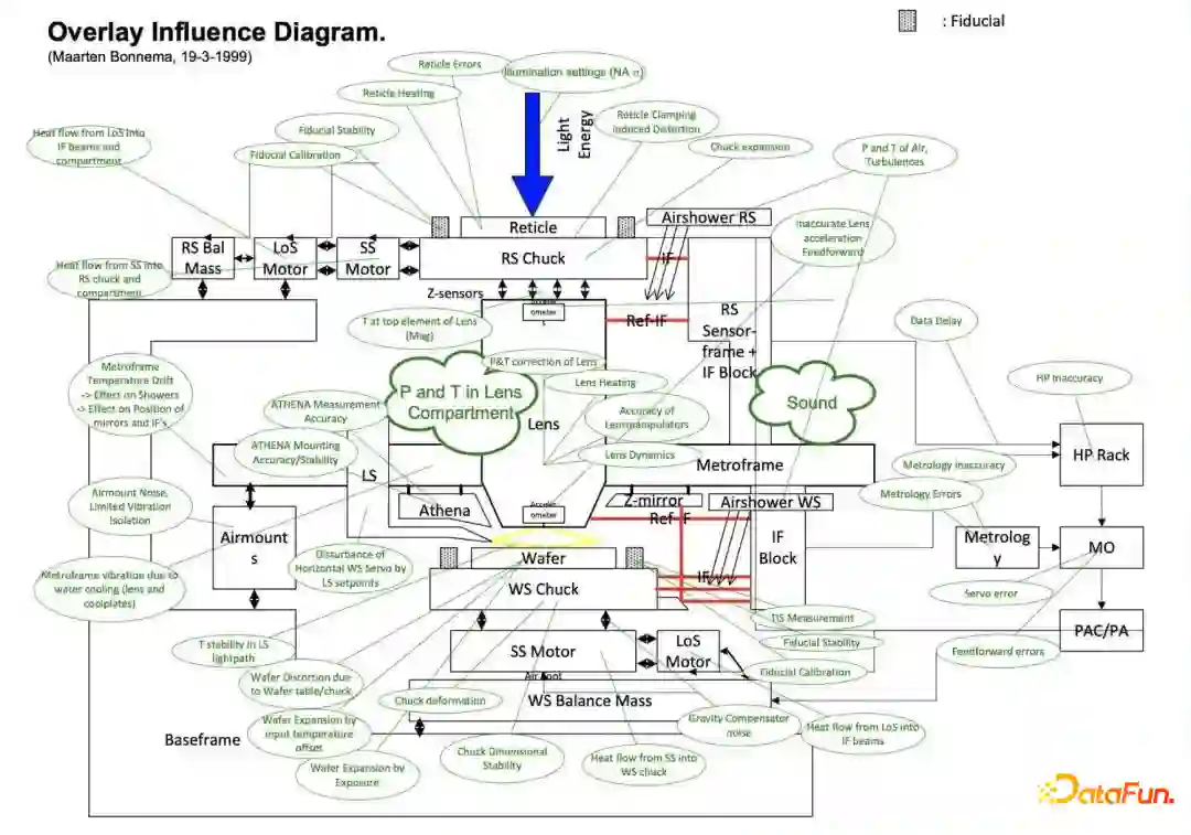 上图展示了1999年之前ASML精度为180µm的光刻机的制造工序图,可以看出工序已经如蜘蛛网般复杂(近期台积精度光刻机的精度可达5nm,制造工序会复杂数倍)。保证所有的工序都要达到足够高的准确度,这样才能保证最终产品的良率,复杂的工序会导致误差的指数级增长(指数魔力或指数诅咒)。