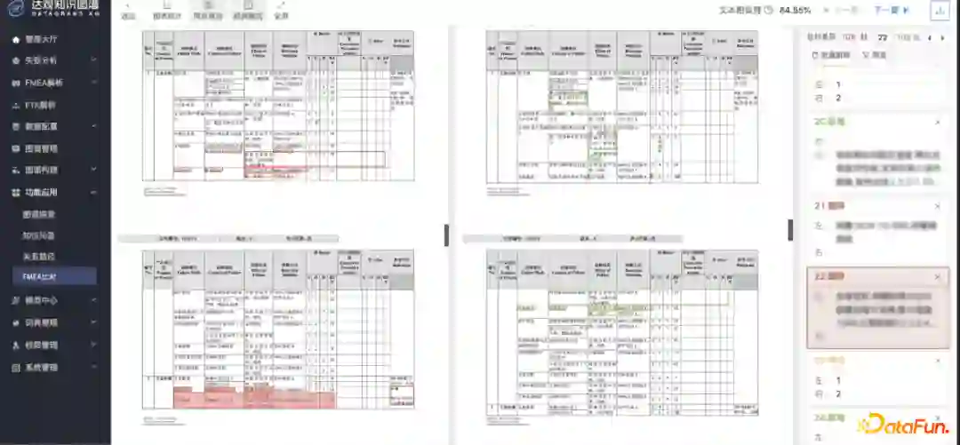 因此,利用平台中的FMEA辅助制作工具,基于知识图谱辅助条件筛选,可自动从已构建的知识图谱中生成FMEA;平台支持DFMEA(新产品)、PFMEA(新工艺)、MFMEA(新设备)等多种类型的FMEA;工程师可直接在收集整理好的FMEA上进行编辑,可大大缩短FMEA的制作周期,提升了效率,同时实现了对历史经验更全面、更充分的利用。