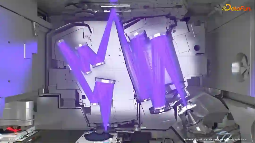 上图展示了来自于ASML公司的一种产品的说明图:光束通过多层反射,最终精确地将图像印制到指定的硅片上,完成光刻。对于其精度要求之高,可以用一个形象的例子类比——假如从上海发射一束光到南京指定的某个点,光束的误差要控制在1cm以内。