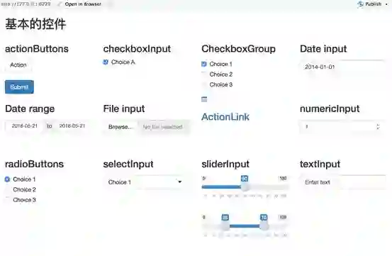 除了上述基本的组件以外,shiny中还有一些很有用的控件可供我们使用,一下是一些经常会使用的控件。